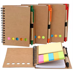 Custom Logo Kraft Spiral Notepad with Pen Memo Sticky Notes Eco Kraft Paper Note Pads Wire-O Notebook With Pen and Sticky Pads